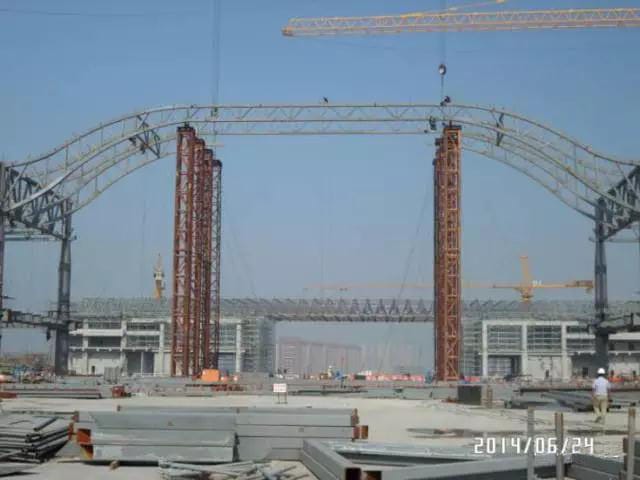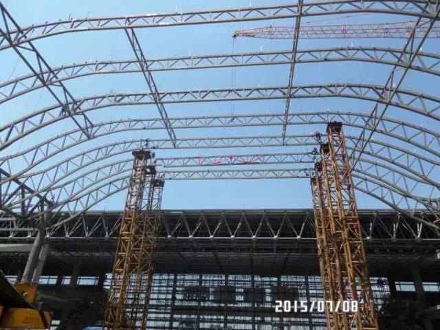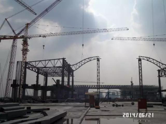(1)In this project, the span of the roof truss is 66m, it’s a big span, we hoisting partitioned, and assemble above the ground, there are 12000ton steel structure parts, it took 4 months to finish the hoisting, finally we meet the schedule.