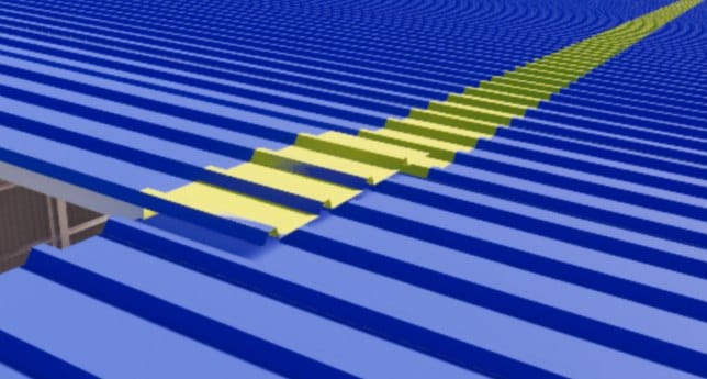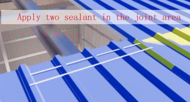 For most buildings, the roof panel length is longer than 12m, but the clear length of the container(40ft container) is around 11.8m, so it has to be cut into two or more pieces. Then you need to know how to splice the roof panels: